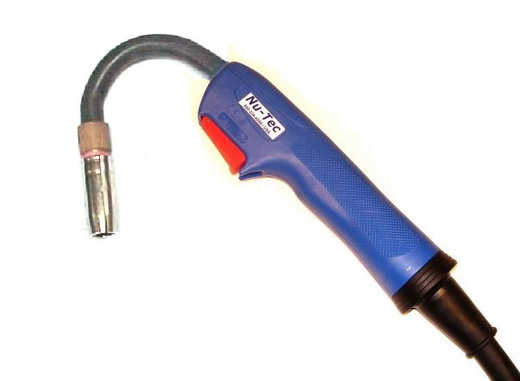 Nu-Tec® SL25F-10 MIG gun FLEX-NECK with 220-degree flexible neck designed to get into tight areas found in automotive and sheet metal shops. Care must be taken to maintain smooth radius when adjusting and not "twisting" by nozzle.